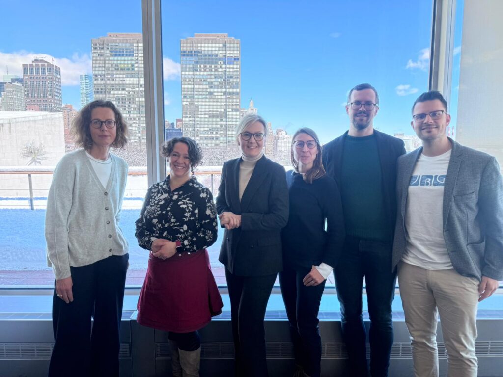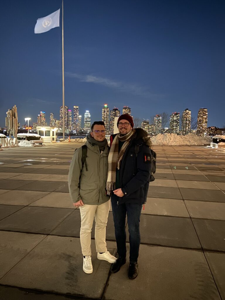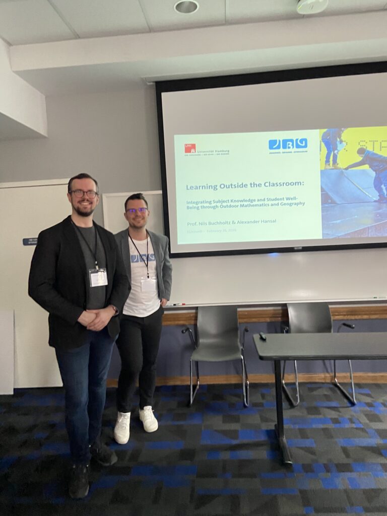Der Weg von diesem Unterrichtsprojekt hin zur Konferenz führte über eine Kooperation mit der Universität Hamburg. Dort beschäftigt sich Prof. Dr. Nils Buchholtz ebenfalls mit Formen des außerschulischen Lernens in der Lehrerausbildung. In seinen Lehrveranstaltungen spielen beispielsweise mathematische Stadtspaziergänge eine Rolle, bei denen angehende Lehrerinnen und Lehrer urbane Räume als Lernorte erschließen. Was uns beide eint, ist das Interesse am Austausch über Potentiale außerschulischer Lernorte. So bewarben wir uns im September 2025 mit unserem gemeinsamen Projekt bei der Konferenz, im November erhielten wir die Zusage und im Februar 2026 ging es dann mit einer fünfköpfigen Delegation, rund um die Vizepräsidentin der Universität Hamburg, Prof. Dr. Natalia Filatkina, nach New York: Für eine Woche sollte ich nun die charmanten Waschbetonfassaden unseres JBGs gegen die Wolkenkratzer Manhattans tauschen. Die Konferenz selbst war ursprünglich auf vier Tage angelegt – zwei Tage bei den Vereinten Nationen, zwei Tage am Teachers College der Columbia University.