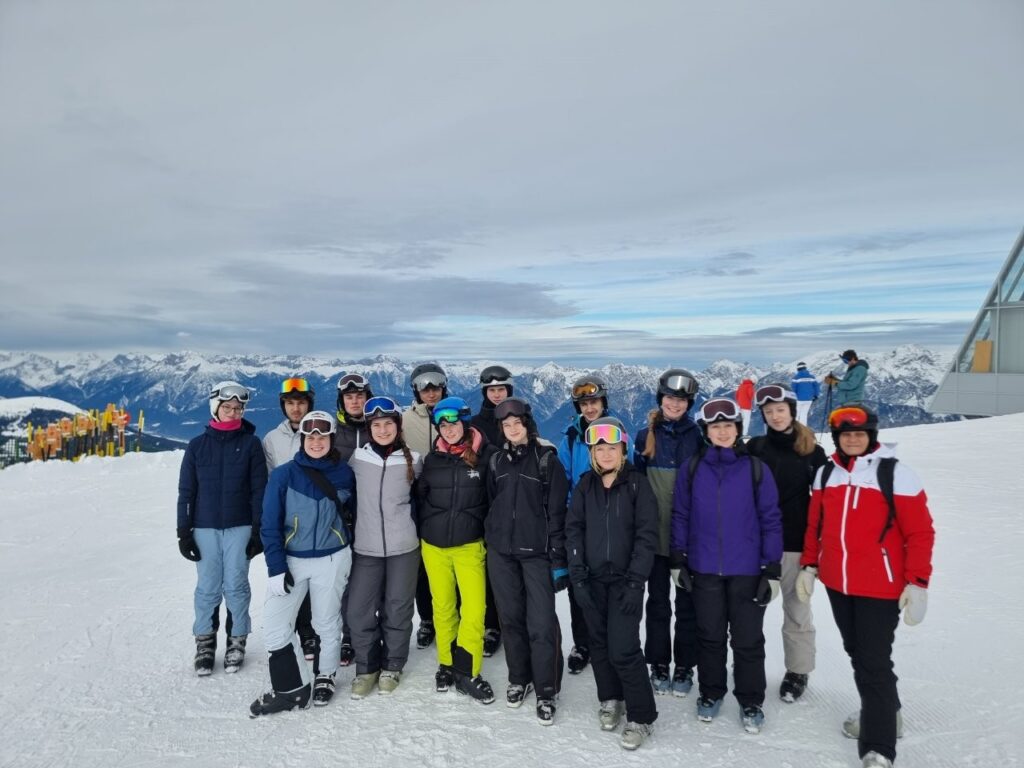 Sportliche Höhepunkte gab es viele: ein gemeinsames Gipfelerlebnis mit Foto und Verpflegung, erste kontrollierte Sprünge über kleine Schanzen im Funpark sowie das erfolgreiche Bewältigen der schwarzen Piste durch einen Großteil der Gruppe. Vor allem die Anfänger:innen machten dank der Unterstützung der erfahrenen Skifahrer:innen große Fortschritte.