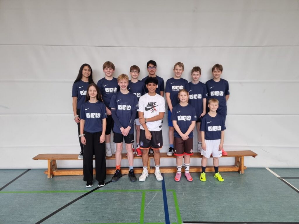Eine besondere Premiere gab es ebenfalls: Erstmals übernahm Leandro aus der 9. Klasse das Coaching. Und er feierte einen sensationellen Einstand! Mit viel Ruhe, Übersicht und motivierenden Worten von der Seitenlinie führte er beide Teams durch das Turnier. Am Ende konnten sämtliche Spiele – wenn auch teilweise denkbar knapp – gewonnen werden.
